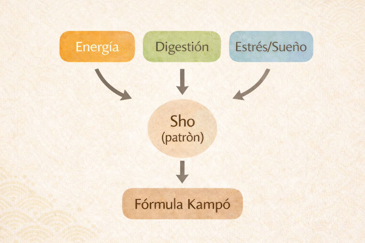 Kampō nació de la medicina china clásica, pero en Japón evolucionó hacia un estilo propio: más práctico, más estandarizado y muy centrado en el “patrón” del momento (en Kampō se conoce como “Sho”). Es decir, más que etiquetar “una enfermedad” de forma abstracta, el profesional observa el conjunto de señales y sensaciones (digestión, frío/calor, tensión, sueño, energía, etc.) y elige una fórmula acorde.