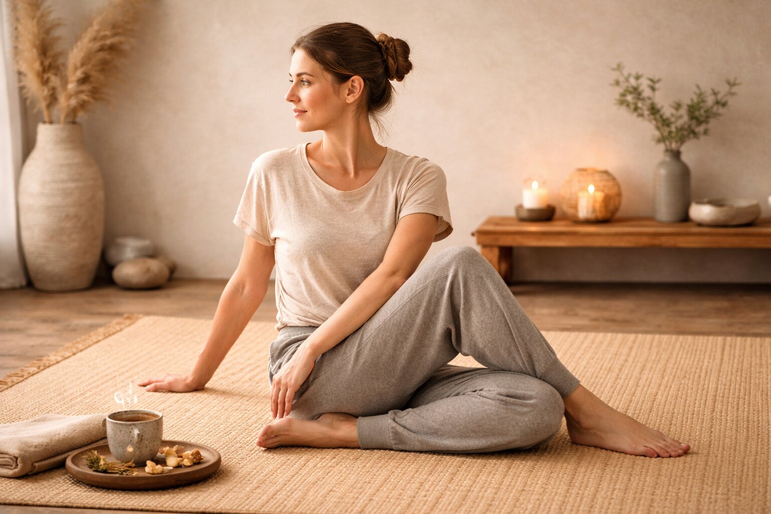 3) Kampō + yoga: secuencia para “soltar”