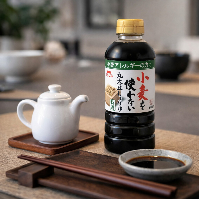 Esta es una salsa de soja premium hecha sin trigo especialmente para los alérgicos o intolerantes al trigo así también como para los celíacos. Hecha de la manera tradicional y sin utilizar granos de soja geneticamente modificados esta salsa tiene un sabor muy rico y suave.